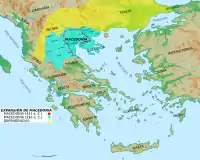 Mapa de la Antigua Macedonia con la ubicación de Alta Macedonia, en la parte occidental.