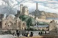 - Un clérigo orante, que se cree que sea el preboste contemporáneo del Trinity College Kirk, Edward Bonkil, acompañado por dos ángeles que tocan el órgano.[2]
