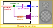 El altavoz de dos vías es un tipo de sistema de reproducción de sonido. Es un sistema con dos altavoces diferenciados que se monta dentro de la misma caja acústica:
