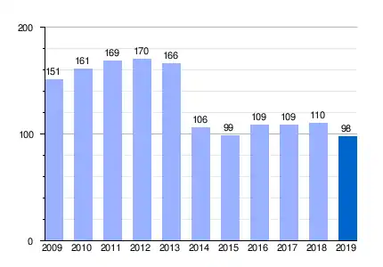 Gráfica de evolución demográfica de Alto de la Rápita entre 2009 y 2019 |