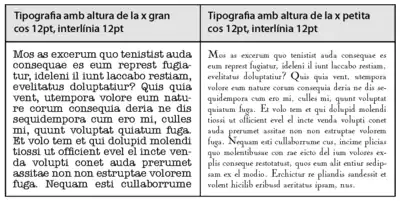 La altura de la x es un rasgo característico del diseño de una tipografía e influye en su legibilidad.