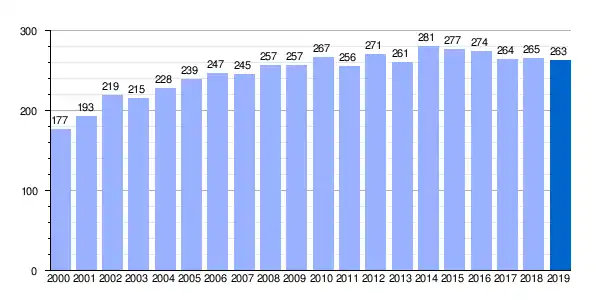 Gráfica de evolución demográfica de Amézaga de Zuya[3] entre 2000 y 2019 |