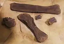 ![]() Reconstrucción esquelética, que muestra los huesos conocidos en azul. | ||