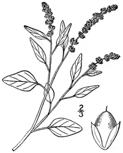 Se trata de una especie con una corta vida perenne o anual. La planta puede crecer hasta alcanzar los 0,5 m de altura. Se trata de una planta vivaz normalmente postrada, que dentro del género pertenece al grupo de especies cuyo fruto es indehiscente, diferenciándose dentro del grupo por sus frutos lisos, siendo la semilla mucho más pequeña que la cavidad del fruto. La mayoría de las flores son dímeras, dispuestas en espicastros terminales y las hojas son ovadas o cortamente lanceoladas.