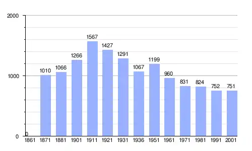 Gráfica de evolución demográfica de Amaro entre 1861 y 2001 |