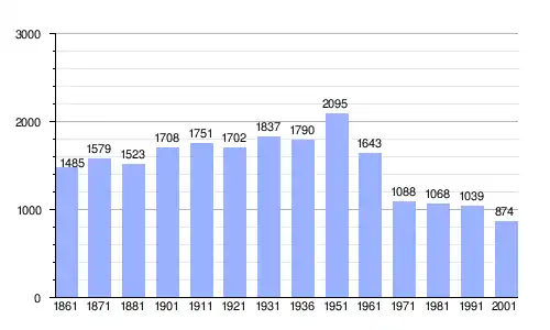 Gráfica de evolución demográfica de Amato entre 1861 y 2001 |