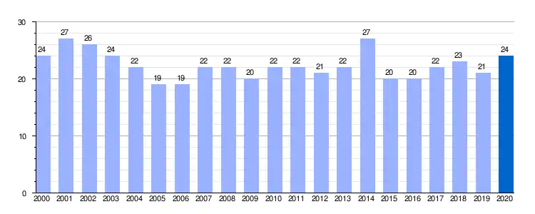 Gráfica de evolución demográfica de Amayuelas de Abajo entre 2000 y 2020 |