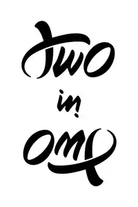 - Este tipo de ambigrama requiere mayor complejidad, ya que supone escribir dos palabras en una misma cantidad de caracteres. Al observar la escritura se puede leer una palabra totalmente distinta al rotarla 180°.