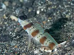 Amblyeleotris rubrimarginata es una especie de peces de la familia de los Gobiidae en el orden de los Perciformes.