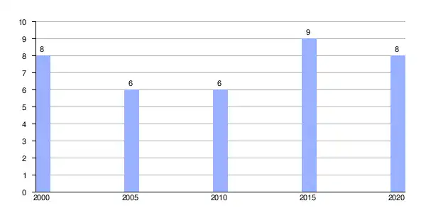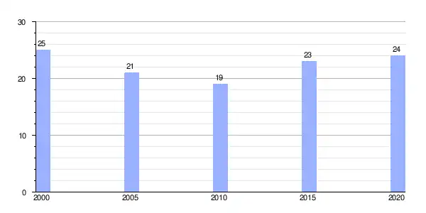 Gráfica de evolución demográfica de Ambreixo (parroquia) entre 2000 y 2020 |