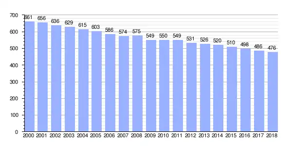 Gráfica de evolución demográfica de Ameijenda entre 2000 y 2018 |