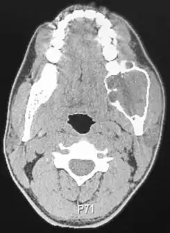 ![]() Una Tomografía de un paciente afectado por un ameloblastoma | ||
