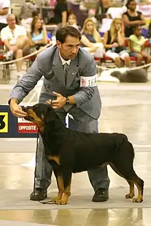 En resumen, la atención a la salud entre los criadores es voluntaria y no obligatoria. En cambio, muchos clubes caninos de fuera de EE.UU. sí exigen pruebas de salud a los perros de cría. El Club del Pastor Alemán de Alemania,[16] por ejemplo, exige radiografías de cadera y codo, además de otras pruebas, antes de que un perro pueda ser criado.[17] Estas restricciones de cría no están permitidas en los clubes miembros del AKC.[15] Como resultado, algunos criadores de EUA han establecido registros paralelos o bases de datos de salud fuera del AKC; por ejemplo, el Berner Garde[18] estableció una base de datos de este tipo en 1995 después de que las enfermedades genéticas redujeran la vida media de un perro de montaña de Berna a siete años. En comparación, el Club del Perro de Montaña de Berna suizo introdujo las radiografías de cadera obligatorias en 1971.[19]