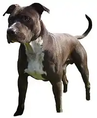 El American Staffordshire Terrier, AST o AmStaff es una raza canina originaria de Estados Unidos.[6] El AmStaff es una raza canina que pertenece al grupo Terrier descendiente del American Pitbull Terrier. No hay que confundirla con su variante Inglesa de menor tamaño (Staffordshire Bull Terrier o Staffy) o con el Bull terrier, aunque tengan nombres muy similares. Teniendo en cuenta que puede ser un perro sociable y amigable no deben de confundirse por su apariencia, este tipo de perro es solo para gente con experiencia ya que un novato no pueda controlarlo o amaestrarlo a un buen modo