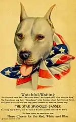 Póster de la Primera Guerra Mundial perro tipo «bull and terrier», período en el que el Pit Bull Terrier raza y el Amstaff comenzaban a diferenciarse.