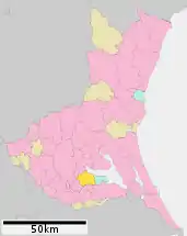 La población se encuentra ubicada en la región sureste de la Prefectura de Ibaraki, a orillas del lago Kasumigaura (霞ヶ浦 Kasumigaura ), que es el segundo mayor lago en Japón. Su territorio limita al noroeste con Tsuchiura; al suroeste con Ushiku; al sureste con Inashiki; al este con Miho, y al noreste con el lago Kasumigaura.