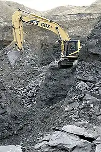 La explotación comercial está mecanizada, pero es muy simple: se abren minas a cielo abierto con excavadoras y el contenido extraído se revisa para extraer la ammolita presente. Las minas abiertas se examinan manualmente en una etapa posterior, y la explotación comercial se complementa con aquellas gemas que encuentran particulares y que venden a Korite. Un 5% aproximadamente es de calidad apta para joyería.