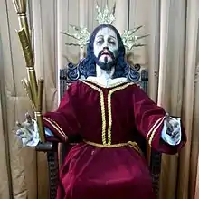 Es una escultura completa y hecha para vestir que representa a Jesús de Nazaret que reina para ejercer su misericordia sobre sus devotos, manteniendo los signos de su pasión.[1] Razón por la cual se ha relacionado con el pasaje bíblico del evangelio de Juan (19:5) cuando Jesucristo es presentado por Poncio Pilatos al pueblo con las palabras "este es el hombre" traducidas al latín como "Ecce Homo".
