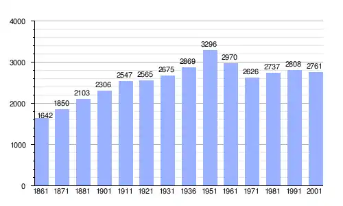 Gráfica de evolución demográfica de Amorosi entre 1861 y 2001 |