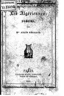Sus primeros poemas se publicaron el mismo año en Le Cabinet de lecture y Le Journal des jeunes personnes. En 1829, La Psyché publicó sus primeros ensayos. El 3 de febrero de 1831, se publica en La Gazette littéraire "Las mujeres argelinas", una especie de epopeya lírica sobre la campaña militar francesa en el norte de África, la cual dio fama a Anaïs Ségalas. Instruida por su madre sobre lo que es laesclavitud, escribe en esta obra sus sentimientos, manteniéndose dentro de los límites de lo políticamente correcto de la época: a través de la descripción de los sufrimientos de esclavos y cautivos, Ségalas expresa su oposición y aversión a la colonización. Más tarde, negaría ser la autora de esta obra, antes de volver a reconocerla.