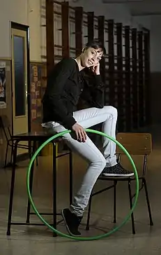 - Ejercicio de 3 aros y 4 mazas en la Final de la Copa del Mundo de Benidorm en 2008
