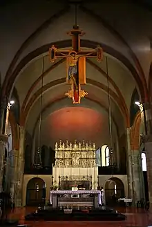 - Crocifissione: escena central del políptico, realizada por Jacopino da Tradate, ocupa los dos órdenes de la composición;