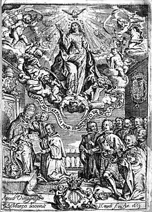 Ceán Bermúdez, siguiendo a Orellana, le dice discípulo de Ribalta, aunque son muchos los años que separan la muerte del maestro de la única obra firmada de Marzo,[1] el dibujo –grabado por José Caudí- para el frontispicio de Solenes fiestas, que celebró Valencia, a la Inmaculada Concepción de la Virgen María, tratado escrito por Juan Bautista Valda e impreso por Jerónimo Villagrasa en Valencia, 1663, con la descripción de las fiestas celebradas el 8 de diciembre de 1661 en honor de la bula Sollicitudo omnium eclesiarum, por la que el papa Alejandro VII aprobaba el culto a la Inmaculada Concepción.[2] Con dos registros nítidamente diferenciados, en el espacio terrenal el papa aparece entregando la bula al embajador de España, Luis Crespí de Borja, en presencia del propio rey Felipe IV y los seis jurados de la ciudad.[3] La composición, de la que existen dos dibujos preparatorios en el Museo del Prado y en el Museo de Bellas Artes de Valencia, reproducía una estampa anterior y más completa repartida durante las celebraciones festivas.