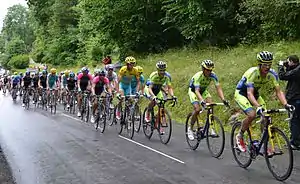 ![]() El pelotón ascendiendo el Col de la Croix des Moinats. | |