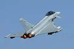![]() Eurofighter monoplaza despegando en 2010. |