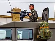 1,296 misiles guiados y 106 lanzadores. | Lotes comprados entre los años 2008, 2010, 2011 y 2012. Algunos montados sobre vehículos Humvee M-1155A1.[6] | ![]() |