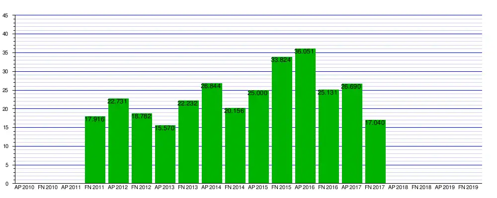 2017 Apertura | 236.015 | 10 | 23.602 | 103.571 | 3 | 34.524 | 84.264 | 3 | 28.088 | 40.450 | 1 | 40.450 | 464.300 | 17 | 27.312 |