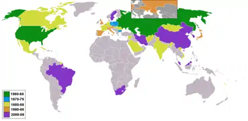 ![]() Mapa de los países cuyos ciudadanos han viajado al espacio hasta abril del 2008. | |||||