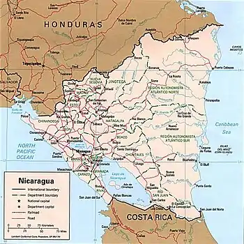 Esta es una lista de las especies de aves registradas en Nicaragua. La avifauna de Nicaragua incluye un total de 787 especies, pertenecientes a 24 órdenes y 76 familias. Una de las especies, el zanate nicaragüense (Quiscalus nicaraguensis), es endémica, tres han sido introducidas por el hombre y aproximadamente 63 son consideradas raras o accidentales. De acuerdo a la Lista Roja de la Unión Internacional para la Conservación de la Naturaleza,[1] 16 especies están amenazadas a nivel global.[2]