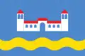 Dividida horizontalmente en dos mitades, azul la superior y blanca la inferior. El escudo municipal sobrepuesto. (Sin aprobación oficial) [14] |