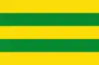 Paño rectangular, de proporciones 2/3 , dividido horizontalmente en cinco franjas de igual anchura, cuyos colores son amarillo, verde, amarillo, verde y amarillo. [23] |