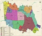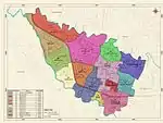 ![]() | Bajo Cañada, Bengala, Bilbao, Camelias, Cañada Sur, Carmen, Cascajal, Cerro Azul, Colombari, Colonia Kennedy, Domingo Savio, Guacayama, Hogar Propio, Jazmín, López Mateo, Luna Park, Magnolias, Mojados, Monguito, Monte Azul, Musmani, Paso Ancho, Presidentes, San Martín, San Sebastián, Santa Rosa, Seminario y Zorobarú. Además, pese a que Parque de la Paz está segregado como barrio éste no está poblado porque alberga en su totalidad al parque homónimo. | ![]() | |
