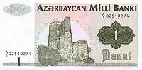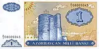 1 Manat | Azul/Amarillo | 63 x 125 mm | Torre de la Doncella | ![]() |