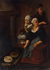 De tardía atribución a Murillo,[14] esta escena doméstica muestra dos piezas elementales en la cocina sevillana del siglo XVII; una gran cazuela de barro en el centro de la composición, y encima, en manos de la mocita que mira al espectador, un plato de loza trianera, decorado con motivos vegetales (los especialistas en cerámica apuntan que "el blanco Triana" era pastoso, con poco estaño).[15]