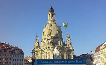 ![]() | ![]() | 23,0 | Frauenkirche | Dresde, Sajonia | ![]() | 1726-1743 (1993-2005, rec.) | Iglesia luterana con 91 m de altura, fue reconstruida después de la Segunda Guerra Mundial. | — | E | |