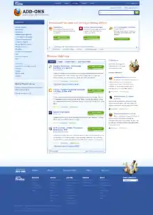 Al igual que otros navegadores basados en Mozilla, Firefox incluye un sistema propio de extensiones (que son uno de los tipos de complementos). El administrador de complementos se abre al pulsar CTRL + Mayús + A o bien yendo a Herramientas / Complementos, desde donde puedan instalarse por sus usuarios para personalizar el aspecto y comportamiento del navegador. Una vez instalada la extensión, si no aparece el icono, hay que ir a Ver / Barras de Herramientas / Personalizar y arrastrar y soltar el icono de la extensión en la barra de herramientas.