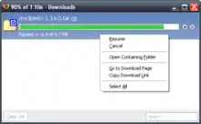 Se incluye también con el paquete oficial, un sistema de gestión de descargas que permite descargar numerosos archivos simultáneamente y abrirlos una vez han finalizado y pausarlos para descargas de archivos grandes. Asimismo, incluye un buscador integrado, que, para aquellos que no limpien las descargas finalizadas, les permite encontrar algún archivo ya descargado de los que se encuentren en la lista. Desde la versión 3.0 es posible reanudar descargas canceladas por error, sin perder datos ya descargados.