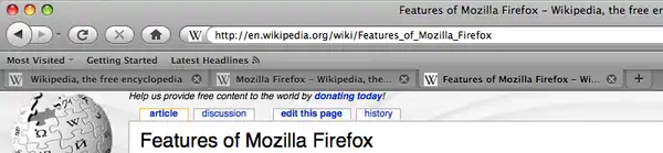 La navegación mediante pestañas era uno de los principales argumentos de Firefox, junto a Opera Browser, para atraer a los usuarios de su principal rival Internet Explorer, que hasta la versión 7 no disponía de esta funcionalidad. Consiste en poder abrir en una sola ventana del programa varias páginas a la vez, pudiendo ir de una a otra a través de las pestañas (o fichas). De este modo, la navegación resulta más cómoda y organizada y se consumen menos recursos en el equipo.