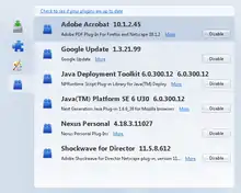 La lista de aplicaciones en Firefox 3.6, resaltando a Adblock Plus.