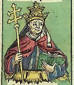 Nicolás V, retratado en las Crónicas de Núremberg.