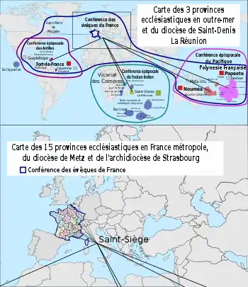 Las iglesias particulares que tiene su sede en Francia se distribuyen de la siguiente manera: