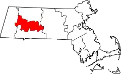 Condado de Berkshire | 003 | Pittsfield | 1761 | Formaba parte del Condado de Hampshire. Gobierno abolido en 2000.[2] | Por el condado inglés de Berkshire | 134 953 | km² ( 931 mi²) | 2411![]() |