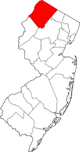 Condado de Passaic | 031 | Paterson | 1837 | Condados de Bergen y Essex | "Pasaeck", palabra lenape que significa valle | 499 060 | km² ( 197 mi²) | 510![]() |