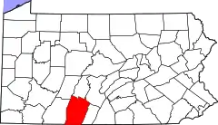 Condado de Fayette | 051 | Uniontown | 1783 | Partes del condado de Westmoreland. | The Marqués de La Fayette | 148 644 | km² ( 798 mi²) | 2067![]() |
