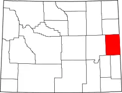 Condado de Platte | 031 | Wheatland | 1911 | Parte del condado de Laramie. | Río North Platte. | 8807 | km² ( 2085 mi²) | 5400![]() |