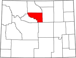 Condado de Campbell | 005 | Gillette | 1911 | Partes de los condados de Weston y Crook. | John Allen Campbell (1835-1880), primer gobernador del territorio de Wyoming (1869-1875). | 33 698 | km² ( 4797 mi²) | 12 424![]() |
